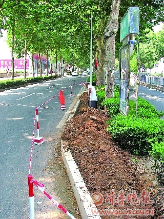 7日,在事故频发的历山路南段车道出入口,工人正在进行道路拓宽施工。据了解,出入口宽度将由5米扩展至8米,希望可以由此减少事故发生。 本报记者 周青先 摄