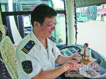 济南市公交一公司三队3路车驾驶员何海光自幼跟父亲学了一手捏面塑的好手艺,公司开展微笑服务活动后,何海光又捏制了展现公交驾驶员微笑服务形象的面人,放在公交车上每天微笑着面对每一位乘客。