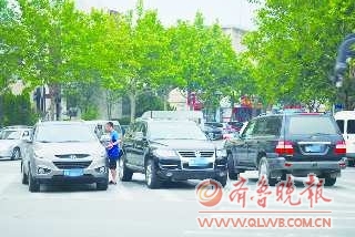 7日下午,记者在昆明路和海港路交叉口处发现有三辆私家车停放在路口东侧的导流区内。其中一位车主随即驾车离开,但另外两辆车车主均不在车内。交警一大队民警解释说,在导流区内停放车辆均为违章。
