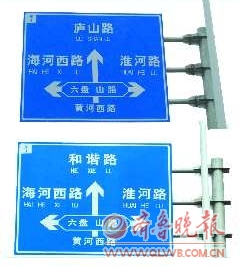 本报6月17日C06版报道了枣庄市高新区新城黄河路上出现的两个令人困惑的指示牌。7月7日下午,记者再次来到黄河路东段,发现两个路牌已经更改。