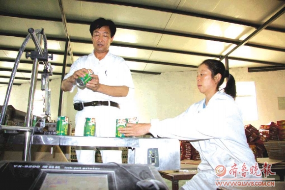 7日,记者来到位于京沪高铁金牛山隧道北边的泰安市民生食品有限公司,见到了总经理孙玉久。他举手投足间很有涵养,当向记者介绍生产板栗粥的流水线时,他上前帮助员工一起检查封口情况,跟员工热情地聊天。“现在的员工不是很多,由于正值麦收时节,孙总让家里有地的员工都回家收麦子,很多没有工作的村民都可以在这工作,孙总这人很实在,我们都愿意跟着他干活。”员工尚丽丽说。