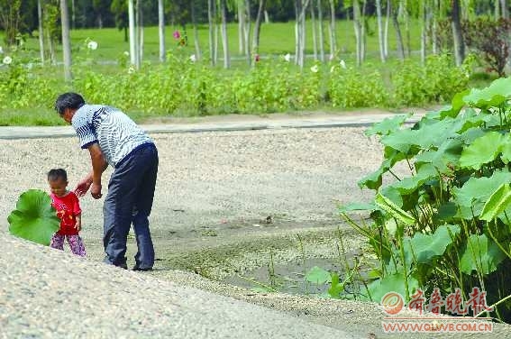 赵王河的荷花开了,可是不少人却看中了河边的荷叶,随意采摘。原本茂盛的荷叶被采摘后,变得光秃秃的,实在大煞风景。