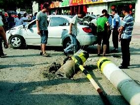 本报聊城7月7日讯(记者 李璇 见习记者 任洪忠)7日下午3点左右,市区花园路上的聊大西校区东苑小区附近,一辆高速行驶的小轿车撞断一根电线杆,导致从聊城大学到后菜市街路口的花园路东西两侧停电。