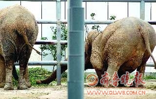 自述:右边的大象奋力伸长鼻子,抢吃左边