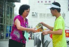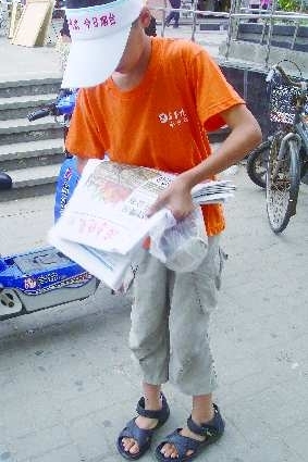 本报7月12日讯(记者 刘清源) 12日上午,开发区的小报童朱洪瑄卖报纸摔了两次跤,但每次他都坚强地爬起来接着卖报纸。