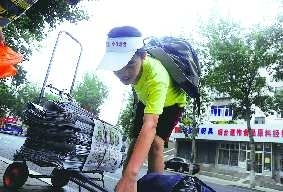 12日早上5点半,记者来到白石小学附近的邮局,郭保正正在地上插报纸。旁边还有他的弟弟郭保丰和堂弟郭保贤。地上摊着四大叠报纸,郭保正将它们一一插好,分装在小推车、行李包、书包里。200份报纸即使分开装,沉甸甸的重量也使小车拉起来晃晃悠悠的。郭保正说,这些工具都是家里现成的,用来运报纸还挺适合。
