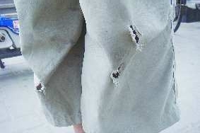 12日上午,记者在开发区彩云城公交站点遇到在卖报纸的朱洪瑄,他积极地卖着手中的报纸。记者看到朱洪瑄的两只裤腿膝盖下面破了几个大洞,一问才知道,原来是他卖报纸的时候摔倒磕破的。