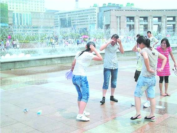 作品描述:去泉城广场游玩时,看到这几人在音乐喷泉边一个躲闪不及,都成了落汤鸡。