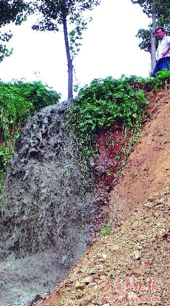 13日上午11时,在事发矿井副井口处,记者看到两条直径20厘米左右的管道在急速地向外排水,同时向外排放的还有旁边几根细一些的水管,快速排出的泥水在出口处形成了一个小型的“灰色瀑布”。