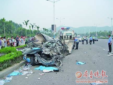 “你看这碎片,都是汽车上的。”事发现场一位姓贾的老先生说,事发时他正坐在马路北边乘凉,两辆汽车自西向东行驶,结果发生了追尾事故。事故发生后,奇瑞轿车整个车身转了360度到了马路北侧,结果正好被由东向西行驶的一辆大货车撞上。“奇瑞车里当时坐了4个男的,只有副驾驶座上的一个男的被救了出来,其他三人都不行了。”事发现场一位王女士告诉记者。