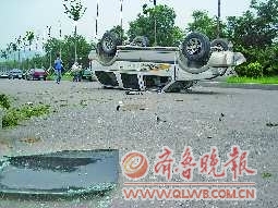 7月13日下午2点多,记者赶到事发现场时,交警还在处理事故现场,马路南北两侧各有一辆汽车,白色江铃越野车车身整个翻了过来,灰色奇瑞轿车车身严重破损,在马路北侧还停放着一辆拉土的大货车。马路上散落着很多汽车零件,地上遗留有很多血迹,被人用土掩埋了起来。“听说三个人年龄都不大,就这么走了,太可惜了!”很多群众在现场发出感叹。