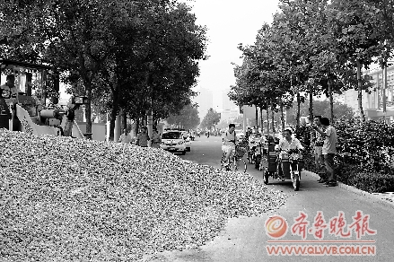 在采访过程中,记者未见到该施工单位负责人,施工人员告诉记者,他们要在附近建广场和绿地,负责人已经去办理审批手续,道路上的石子会尽快清理,给行人让出道路。
