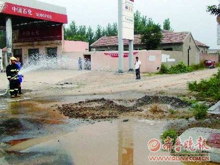 本报7月13日讯(记者 马瑛 通讯员 李明)7月13日上午,宁津县南环路东首一中石化加油站附近的施工现场,挖掘机在施工过程中不慎将天然气主管道挖破,导致大量天然气在高压下大量泄漏,情况非常危险。