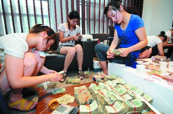 “从下午两点就开始清点,已经数了一个多小时,还没有大变样。现在知道数钱数到手抽筋是什么感觉了。”佳轮总公司财务总监孙菁说,他们调动了公司总部财务科所有工作人员,并且还邀请了2名银行的工作人员,到销售店清点钱数。