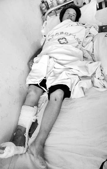 7月13日,记者在罗庄街道办事处卫生院见到了受伤住院的刘金花女士。她告诉记者,当时城管委4名工作人员去查处违规摆摊,有两名工作人员上前提走了她三轮车上的煤气罐和煤气灶,因为担心三轮车被查走,她便想立即骑着三轮车离开。