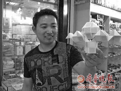 “只要想到的东西都可以变出来,会玩的感觉很简单。”杨庆军笑着说,上中学时看到朋友把这根魔尺折叠出各种形状,感觉特别神奇,一直很喜欢。今年26岁的杨庆军开了家玩具店,除了各种汽车和飞机模型外,他最喜欢的就数魔尺了,没事的时候就拿出来折叠成各种形状。
