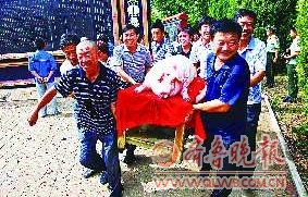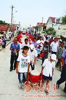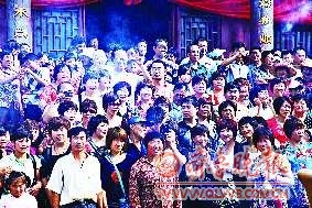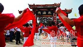7月13日,农历六月十三,这一天是传说中海龙王的生日,也是具有日照民俗特色的渔民节。8时许,日照经济技术开发区裴家村的渔民们抬出脑门上戴着一朵大红花的整猪,端出蒸好的大个头馒头和其他贡品,一路敲锣打鼓、鸣放鞭炮,在秧歌队和围观群众的簇拥下来,浩浩荡荡的来到观海园内的龙王庙。