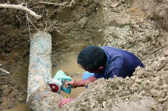 本报7月13日热线消息(见习记者 王媛媛) 13日,市民李先生拨打本报热线电话称,在胶州路与北一路交叉口处有自来水管道破裂,路面积水严重,已经好几天了,一直无人问津。记者赶往现场时,自来水公司抢险工作人员正在对破损水管进行抢修,破损的管道已于下午被维修好。