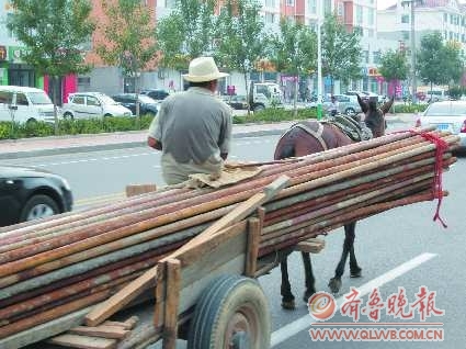 马帮的陈师傅告诉记者,他们不仅负责拉运,还要装卸。“一车能拉两吨重的架管,从黄河一路到黄河十路一趟也就40来块钱,一天不闲着也就挣个百十块钱。”