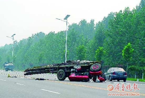 14日下午4时许,在德武路上一辆农用拖拉机翻倒在路中央,阻碍了交通,来往的车辆只能避而远之。