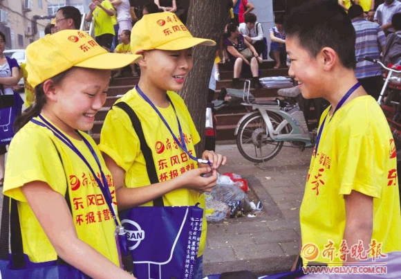 14日上午记者看到,报童李纯屹在妈妈的带领下来到了南湖公园。一下电动车,李纯屹的妈妈便提醒他可以向路边摆摊的两位商贩推销一下。对于妈妈的建议,李纯屹照做,确实卖出去了一份报纸,不过当妈妈再建议他到其他地方卖报纸时,李纯屹显得有点不耐烦。看着渴望独立的孩子,李纯屹的妈妈笑着说,让孩子参加“报童营销秀”的主要目的是为了锻炼他各方面的能力,但作为家长毕竟不放心,因此就跟了他一会。看着孩子表现得还不错,李纯屹的妈妈便骑着电动车离开了。