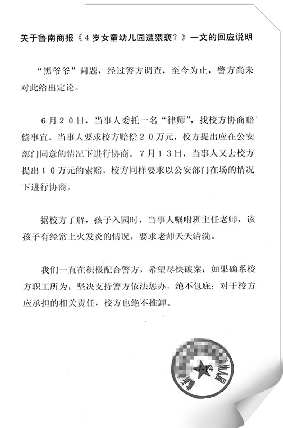 本报7月14日讯 (记者 孙贵坤)7月14日14时许,该幼儿园的5名工作人员来到本报对此事作出回应,称如果确系校方职工所为,坚决支持警方依法惩办。