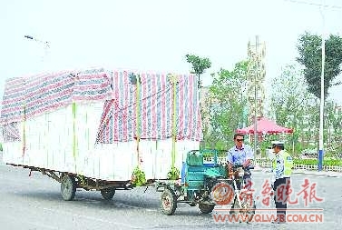 7月14日上午,巨野县花冠路西段,一辆快速行驶的奇怪货车引起了执勤交警的注意。只见这辆车既不像拖拉机、农用三轮车,也不像摩托车、电动车,可谓“四不像”。正是这样一辆“四不像”竟然拉着满满一车白色泡沫板在路上疾驰。