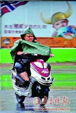 15日下午,一男子全副武装冒雨前进。 本报记者 徐延春 摄