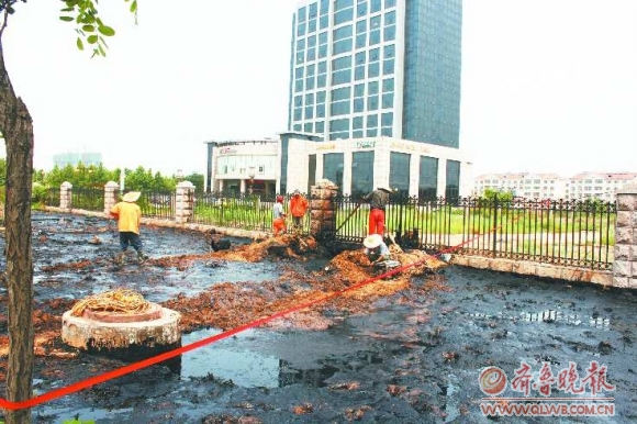 15日5时左右,东营城区北一路739号附近外输油主干管线因腐蚀导致原油泄漏,东辛采油厂一矿十四队立即组织“会战”,百余人赶到现场收油、维修、维持秩序。由于抢修及时,穿孔管线附近的绿化带并未受到大的污染。管线穿孔造成的原油泄漏总量还在统计中。 本报记者 郑美芹 摄