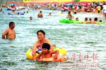 17日,威海最高气温只有25℃,虽然气温不高,但威海国际海水浴场游人仍然众多,大家在水中嬉戏,乐此不疲。