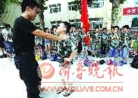 “以前觉得站军姿没什么了不起的,没承想练起来这么累。”练了不到半小时,这些平日里生龙活虎的小家伙已累得腰酸腿疼。虽然不少孩子直喊累,但却没有一个人说放弃。一听说要学习“一招制敌”的格斗术,可乐坏了这帮小家伙,迫不及待地摆起了架势,挥舞着胳膊展示武侠小说中的招式。