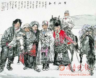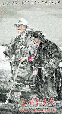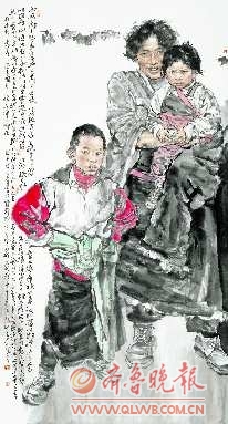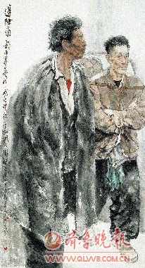 同时,王珂在传统与现代之间不断调整自己的画风,集腋成裘,捕捉更接近自己个性气质的东西。在他的作品中,我们可以看到两种截然不同的造型方式:一种诸如获2002、2003年中国画大展银奖的作品《走进陕北》、《陕北人》,获2004年“菜乡情全国中国画提名展”金奖的作品《又是一个春天》,及《给我们照一张》、《三代人》、《守望家园》等一系列其他获奖作品,画家用水墨写实的表现方法,着力表现那些质朴、纯真、快乐和勤勉的陕北农民。王珂喜爱那些朴实、生动、感人的人物形象,喜欢用具体的形象来表现自己的感受。同时,他的画也很平实:所塑人物就像邻居的大叔大嫂,朴素、平易、自然、亲切。可以说,王珂对西方造型方式的理解和深厚的笔墨功力使他成功将造型写实和笔墨趣味结合起来,创造了一种水墨语言的新“修辞”方式。在他另一种表现古代人物画的题材中,画家则选用古拙、含蓄而略带夸张的线性造型代替了黑白的墨迹效果,人物造型处理也呈现出一种随意性的趋势,画面上没有那么多颜色和皴擦表白。王珂韵味隽永的简约古代人物画,让我们不仅品味到了传统的魅力,而且体会到了画家超越传统的自信。