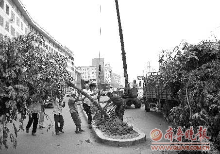 “所有树木从移植到栽种完成不会超过40分钟,这样可以保证树木的成活率在99%左右。”施工现场负责人臧经理称,这些树木是从城郊的景臻苗圃移植过来的,全部用麻绳“包装”好,以防运输过程中损坏。记者看到,工人们栽植树木时采用“流水线”作业,一辆吊车负责将树木从车上挪到树坑处,工人将一些树枝、树叶剪掉以防止水分散发,然后,另一台吊车将树木吊至树坑处填埋。随后,还有工人负责后续的支撑架安装等工作。