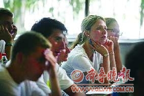 当天上午,23名奥地利学子还在孔子研究院学术讲堂上了第一堂汉语课。曲阜师范大学的李颖为23名学子分别发放了中文名字卡片,他们的中文名字包括杨雨哲、王乐珊、张帅等。随后师生共同进行基础性的汉语对话。
