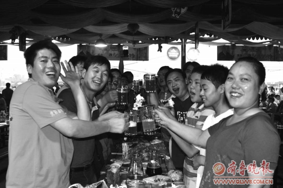 16日下午,记者来到泰山啤酒生肖园,还没到开幕式地点,一阵阵酒香便已经缓缓飘来。记者看到,园内已经聚集了四面八方的来宾,有的在品味着鲜美的泰山原浆,有的在品尝着各地的特色小吃。18时30分,随着舞台上啤酒木桶的红布揭开,各位来宾接酒畅饮,狂欢节正式开幕。“来,干杯!”台下的市民一起伴着动感的音乐舞动身躯、把酒言欢。