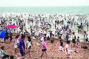 7月17日,万平口风景区人潮涌动,如同“饺子开了锅”。记者从万平口管理服务中心了解到,7月16日、17日两天万平口游客人数超过24万人次,是入夏以来人数最多的一个周末。据该中心办公室主任高华锋介绍,按照往年规律,今年8月第一周该景区将再次迎来游客高峰。 本报见习记者 刘涛 摄影报道