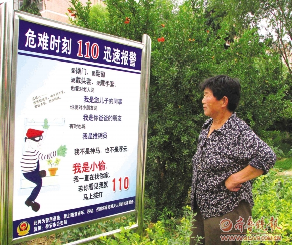 17日中午,记者来到岱岳花园小区,找到了这块新潮的公安宣传栏。