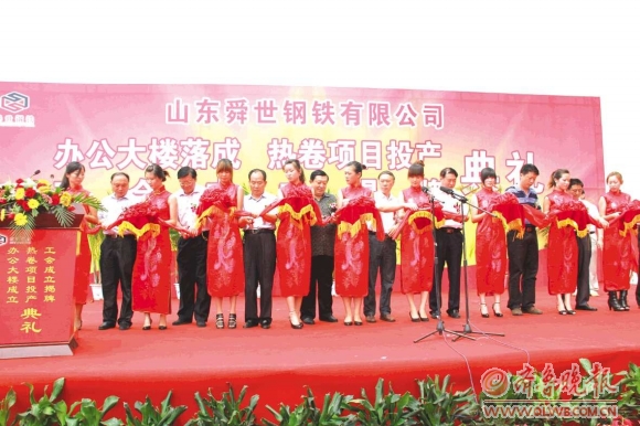 本报讯16日上午,泰安市满庄钢材大市场舜世钢铁有限公司院内,举行了山东舜世钢铁有限公司办公大楼落成、热卷项目投产及工会成立揭牌庆典活动。