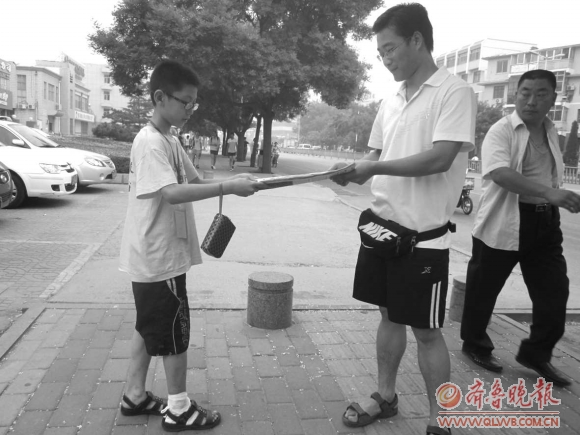 17日一大早,在泰安市邮政局院内,史泽豪的妈妈正在一旁催促儿子:“别的小朋友都上街了,你整理得要快一点,你的速度可有点慢了。”史泽豪冲妈妈一笑,加快了速度。“脚还疼不疼?”妈妈又忍不住关心起儿子来。“没事,感觉不到疼了,想起要卖报纸我就不疼了。”小泽豪调皮地说。