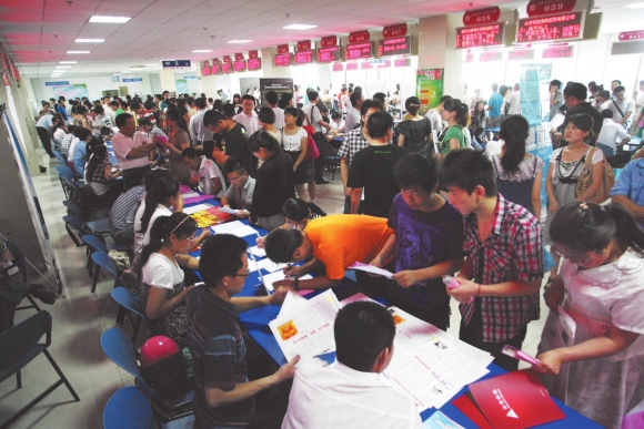 16日,由本报联合潍坊市人社局、团市委和潍坊电视台等单位共同为企业和大学生们举办的“第六届大学生暑期勤工俭学暨第二届银麦啤酒创业实践活动”,在人力资源新华路市场举行,现场火爆。招聘会上,爱心企业专门向大学生提供了300多个短期岗位,百余大学生达成了勤工俭学意向。