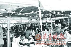下午3点,记者在金沙滩周边的三家饭店看到,虽然已经过了午饭时间,但这三家饭店仍然是人满为患,并且不断有客人进来入座就餐。据金沙滩海鲜美食广场一家摊位的老板唐先生介绍,自从胶州湾隧道开通以来,每逢周末吃饭问题就成了很多游客的一大难题。“现在来我们这儿吃饭的人要比隧道开通前增加了一倍多,就现在的服务人员、配套餐具以及桌椅等设施,已经很难满足顾客的需求了。”唐先生说,虽然需求量在不断地加大,但他们摊位所划定的面积却极其有限,即便想扩大规模,也实在无从下手。