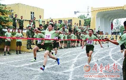18日上午,武警官兵在跑步比赛中奋力争先。当日,武警济宁支队首届军事体育运动会落下帷幕。290多名官兵在3天时间里分别在400米障碍、催泪弹投掷、接力、步枪精度射击等项目上展开了激烈角逐,在体育场上尽展军人风采。
