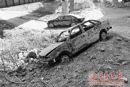 轿车被烧成一个空壳。