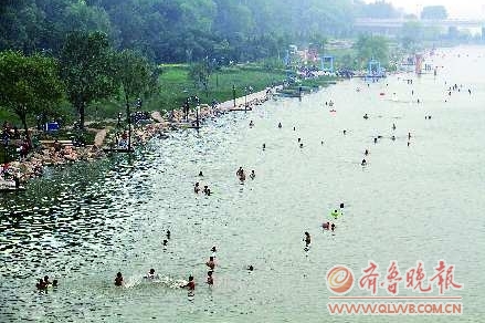 7月18日,越来越多的市民到岔河等开放水域戏水解暑,不过开放水域水情复杂,戏水游泳时还需注意安全。 本报记者 马志勇 摄