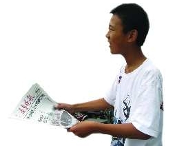 本报7月18日讯(见习记者 苏玉)“叔叔,买份报纸吧。”“不用了。”“哦,没事,谢谢。”“就算别人不买,我也要说句谢谢。”育才中学的韩志鹏如是说,这个晒得黝黑的大男孩显得很有礼貌。