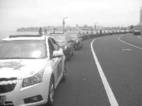 9点整,车队一字排开,浩浩荡荡地奔驰在市区主要街道,引来不少行人驻足观看。