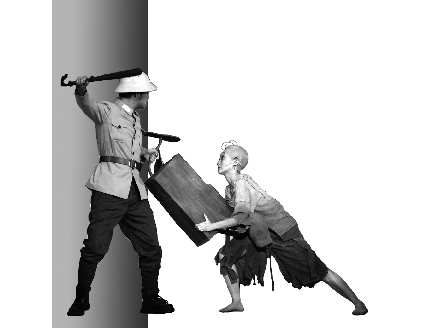 而原著中读者所熟悉的三毛擦皮鞋、卖报等经典桥段也以音乐形式再现。全场演出,演员情绪饱满,表演真挚,舞台上下几次出现互动紧密同声合唱的情形。值得一提的是,剧中的演员造型服装都非常接近张乐平笔下的漫画人物,尤其是三毛的扮演者石玉心,与漫画中的三毛形神皆似,一出场就鲜活地演绎出一个让人疼惜的流浪儿形象。