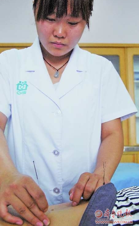 与此同时,在中医理疗室内,开泰花园的刘女士正在用电脑中频治疗仪治疗腰椎间盘突出。刘女士说,腰椎间盘突出引起右下肢疼痛是主要症状。起初服用西药一个月,效果不是很明显。今天是用中医治疗的第9天,右下肢疼痛症状明显减轻。