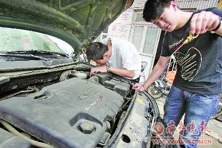 19日,2010年退役士兵职业技能培训班结业考试开考。此次旨在帮助退役士兵安置工作的职业技能培训由济宁民政等部门联合多家技校、驾校举办,开设有汽车驾驶、汽车维修、平面设计、数控机床等10余个就业热门专业。图为退役士兵正在考核汽车维修技能。 本报记者 张晓科 张建丽 摄