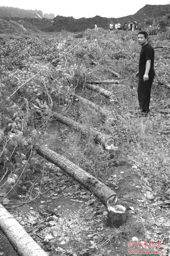 19日上午10点左右,记者来到韩家结庄东侧的田地里看到,十几名村民正查看被毁的杨树、果树。“一夜之间,好几户村民辛辛苦苦种的树都倒了,也不知道谁干的。”站在田间道路上的村民们气愤地说。在村民宋其武的带领下,记者和其他村民来到了田地。只见碗口粗的杨树朝着一个方向倾倒,散种的栗子树被砍倒后砸在了杨树下面。“栗子树是2003年种的,200多棵杨树也有4年了。今天早晨,听说有人砍树,过来才发现我家的一棵也没有剩下。”宋其武蹲在田地,无奈地叹着气。
